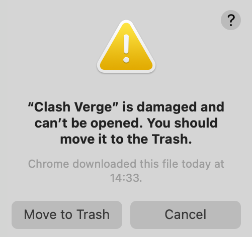 3.打开 Clash Verge macOS 客户端时,您可能会收到这样的 macOS 警告: